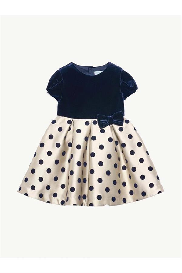 Abel&Lula Kız Çocuk Fırfırlı Puantiyeli Mikado Elbise Lacivert 5537