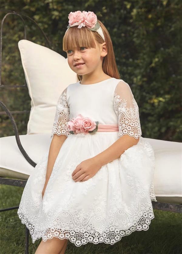 Abel&Lula Kız Çocuk Güpür Nakış Elbise Krem 5034
