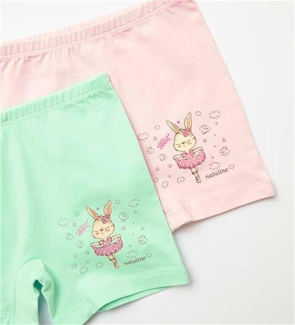 Natuline Kız Çocuk 2'li Sweft Rabbit Likralı Boxer Pembe/Sarı 5501