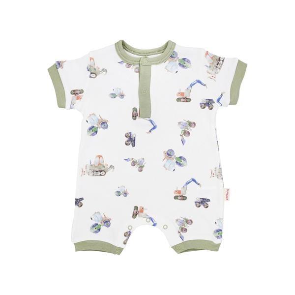 Tiffany Baby Erkek Bebek Work Machine Theme Yarım Kol Kısa Tulum Beyaz/Yeşil INT 24 13026