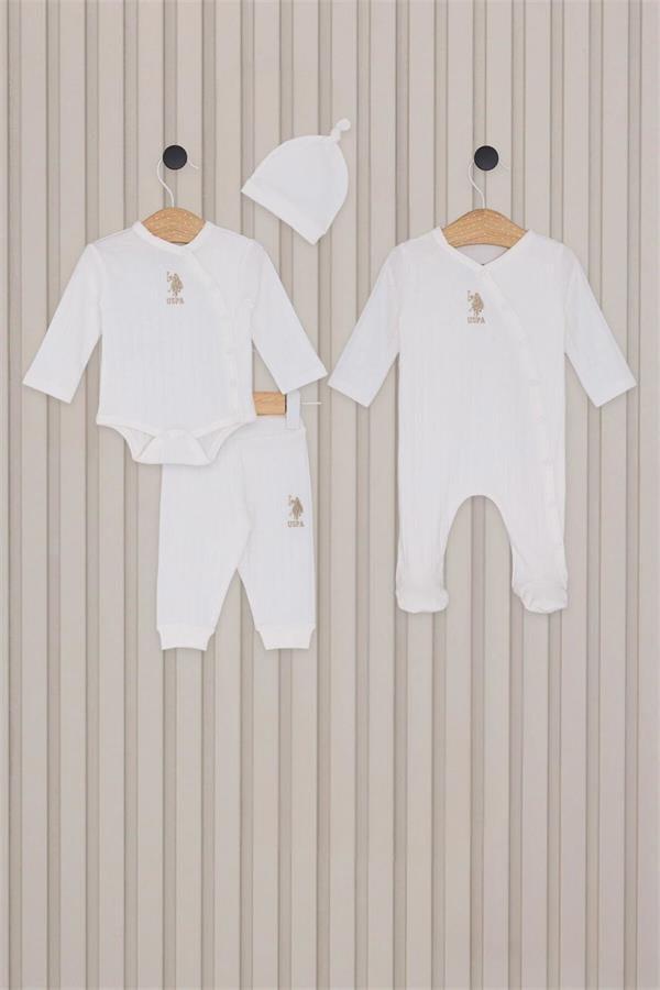 U.S. Polo Assn Erkek Bebek 4'lü Zıbın Seti Krem USB2072