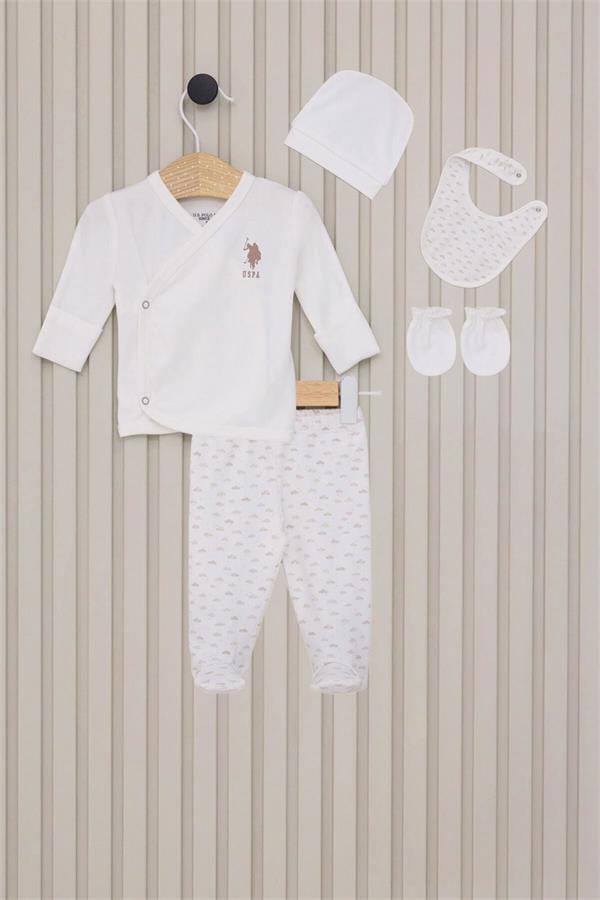 U.S. Polo Assn Erkek Bebek 5'li Hastane Çıkış Seti Krem USB2022