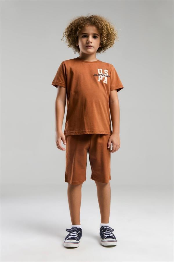 U.S. Polo Assn. Erkek Çocuk Bermuda Tişört Şort Takım Açık Kahve US2048-4