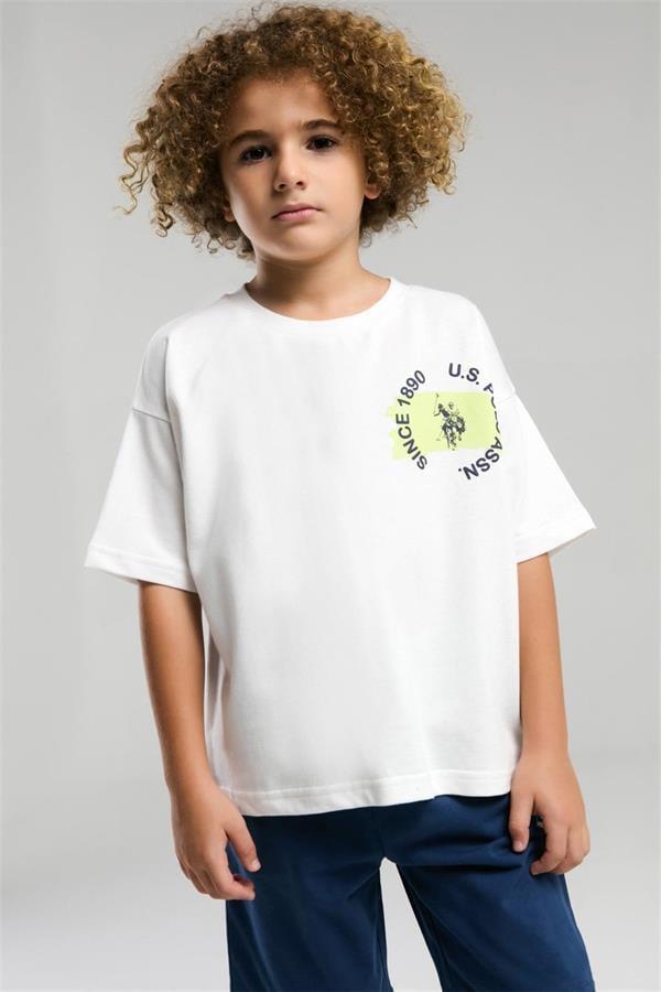 U.S. Polo Assn. Erkek Çocuk Bermuda Tişört Şort Takım Beyaz US2055-G