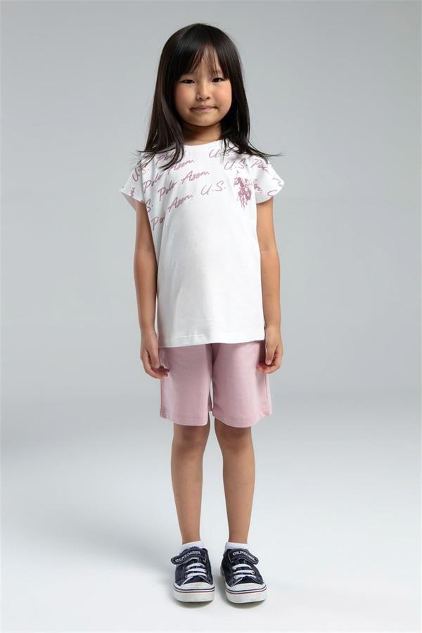 U.S. Polo Assn. Kız Çocuk Bermuda Tişört Şort Takım Beyaz Soft Pembe US2066-G