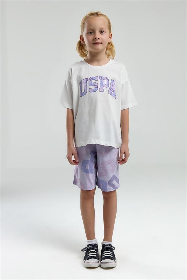 U.S. Polo Assn. Kız Çocuk Bermuda Tişört Şort Takım Beyaz US2084-4