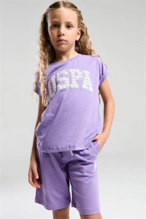 U.S. Polo Assn. Kız Çocuk Bermuda Tişört Şort Takım Koyu Lila US2086-4