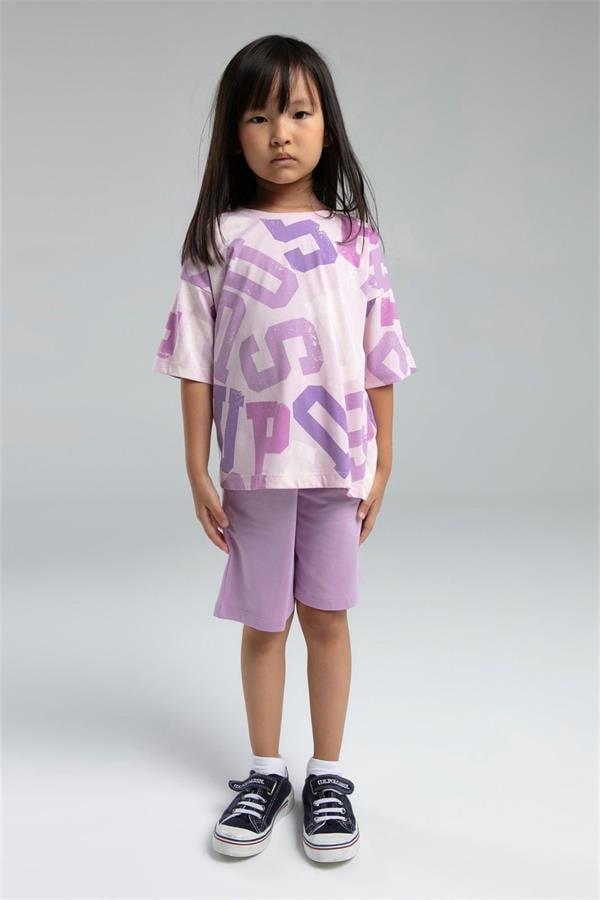 U.S. Polo Assn. Kız Çocuk Bermuda Tişört Şort Takım Toz Pembe US2085-4
