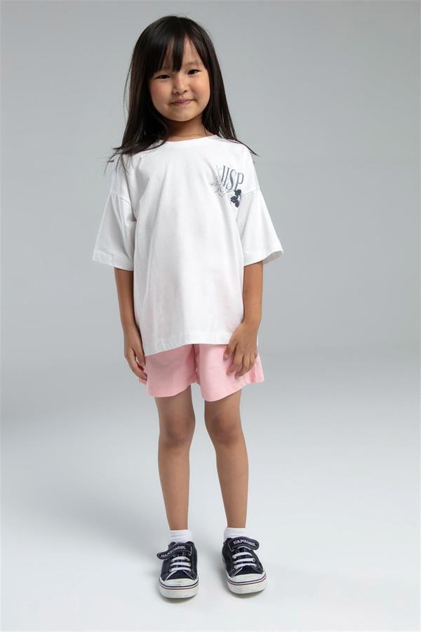U.S. Polo Assn. Kız Çocuk Tişört Şort Takım Beyaz US2072-4