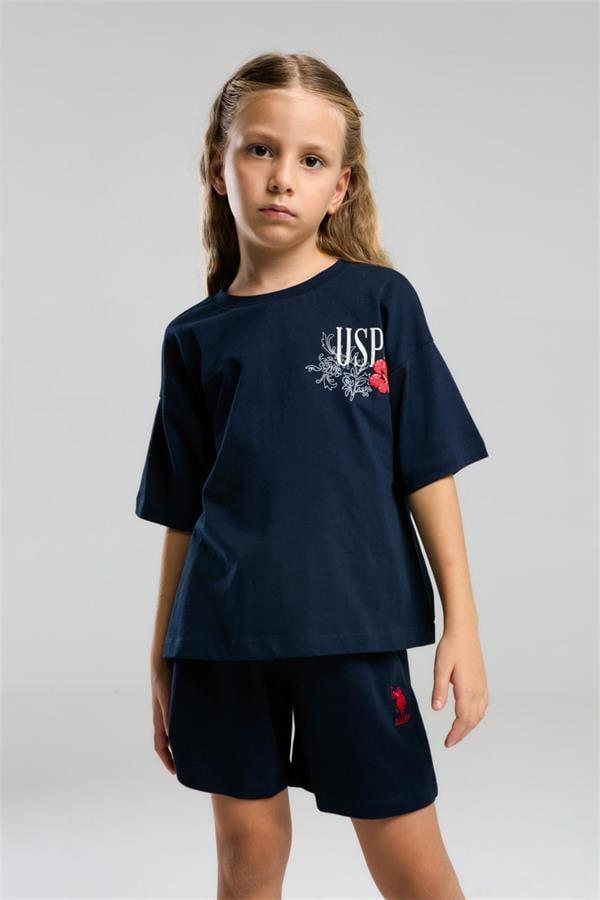 U.S. Polo Assn. Kız Çocuk Tişört Şort Takım Lacivert US2072-4