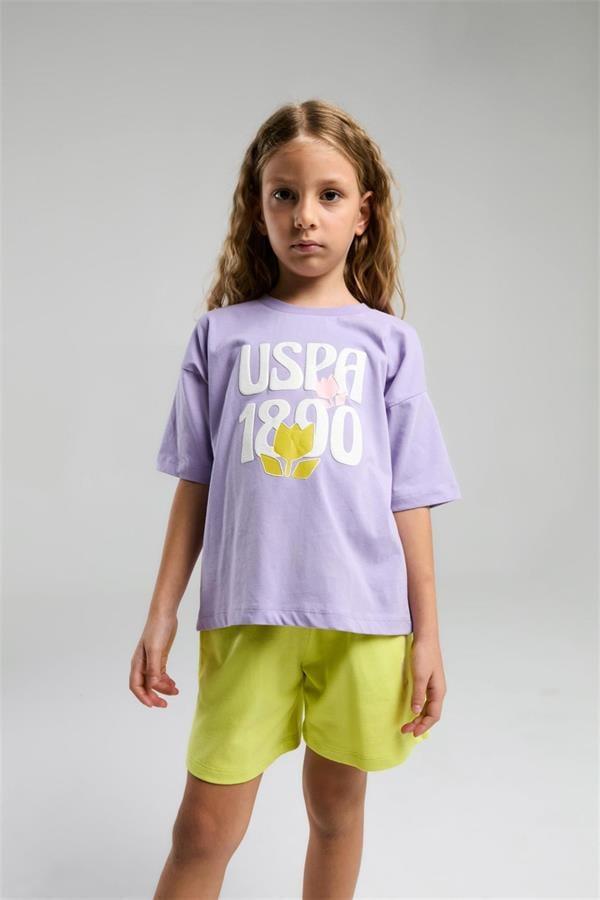 U.S. Polo Assn. Kız Çocuk Tişört Şort Takım Lila US2096-4