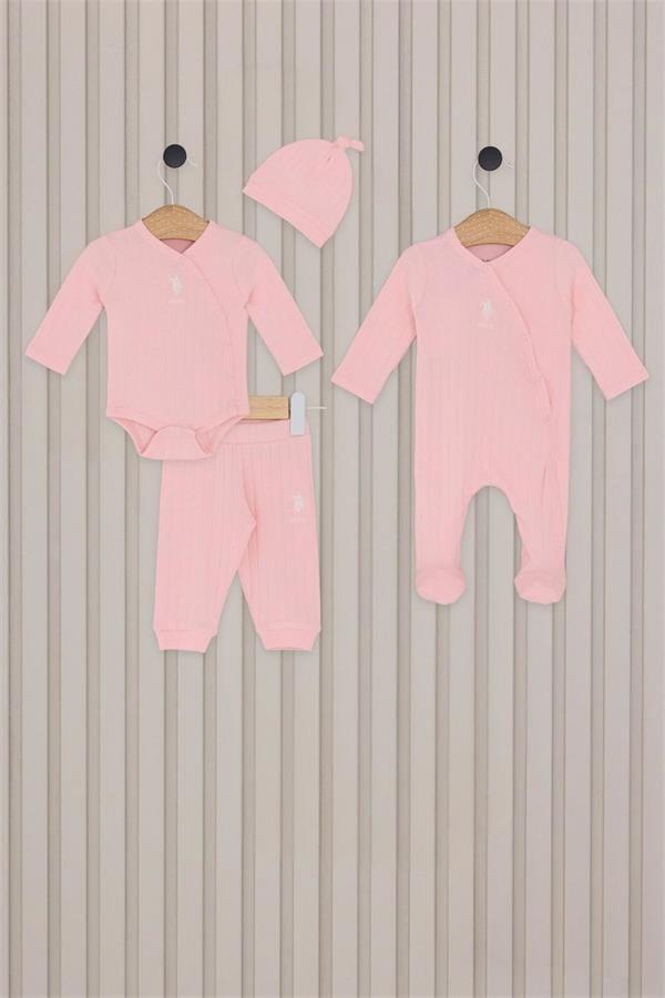 U.S.Polo Assn. 4'lü Zıbın Seti Kız Bebek Açık Pembe USB2145